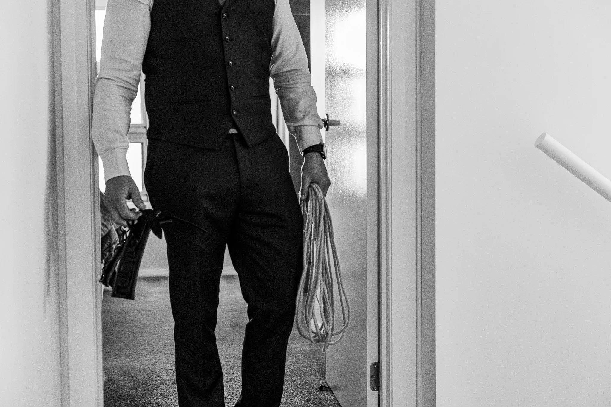 Mike brings decades of experience across the full spectrum of BDSM — from tender age-play dynamics to the intense edge of sadomasochism, and the sculptural restraint of shibari. He’s particularly drawn to the craft of rope and restraint: the slow, deliberate knot that secures and releases, the way tension sculpts posture and focus, the hush that falls when a body is willingly surrendered to skillful hands.